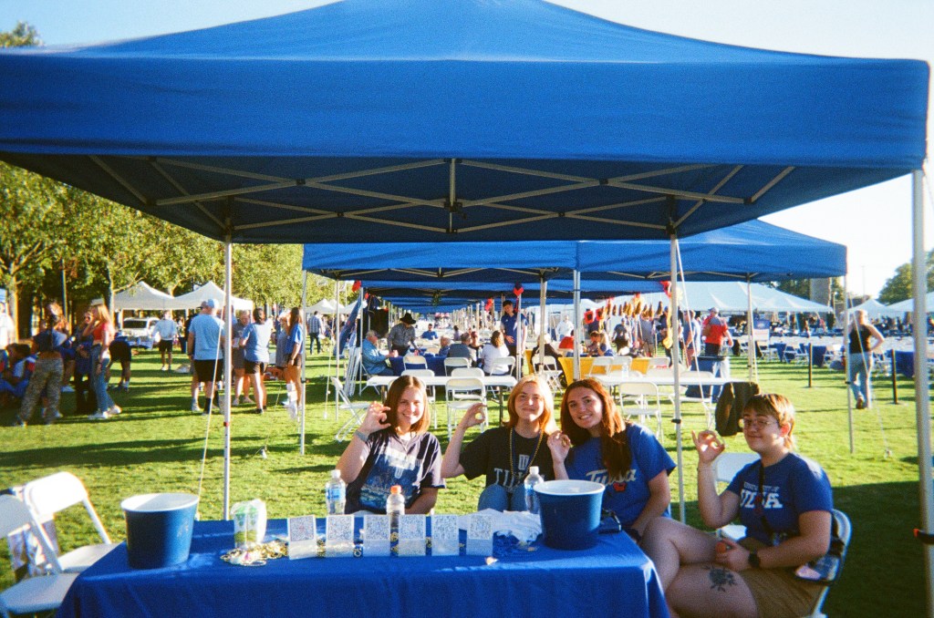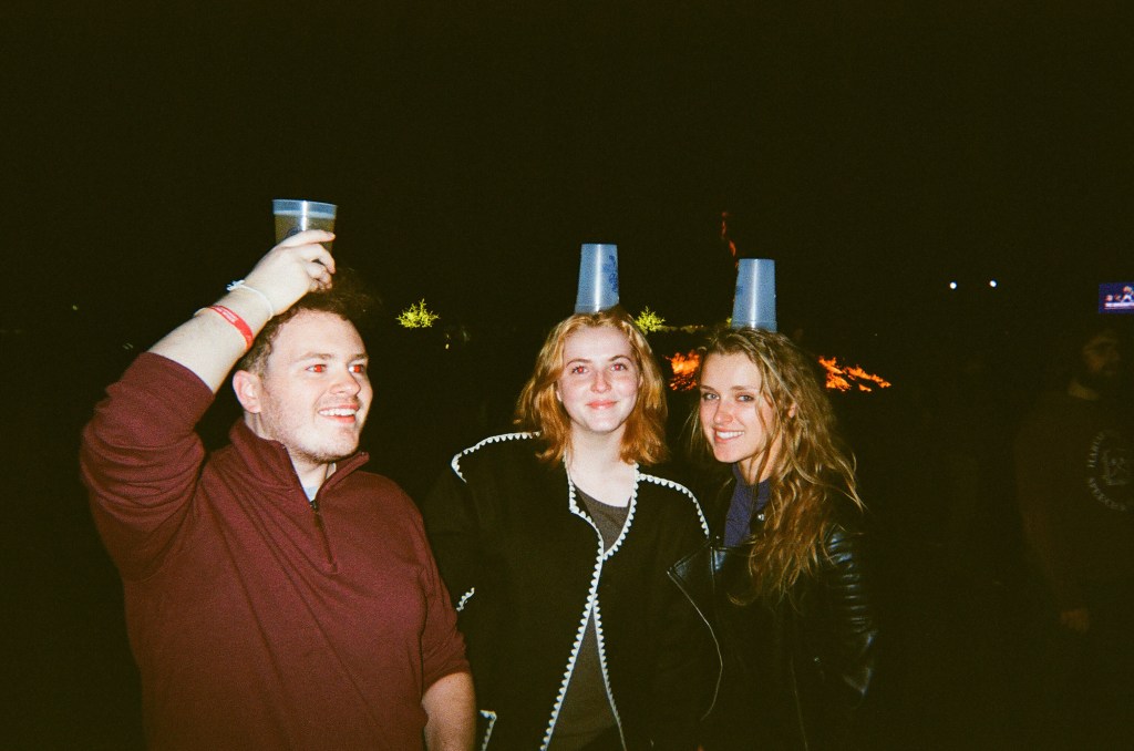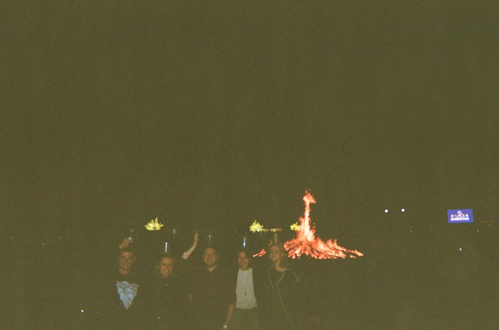 the gang at homecoming bonfire