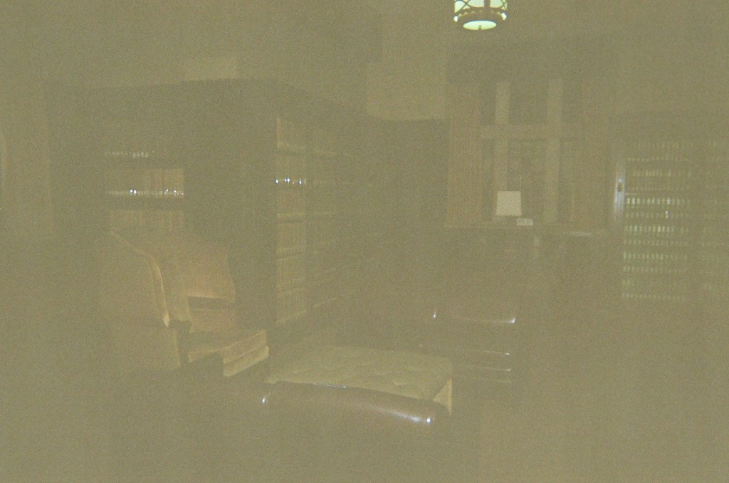 very dark shot of the library I lived in during finals